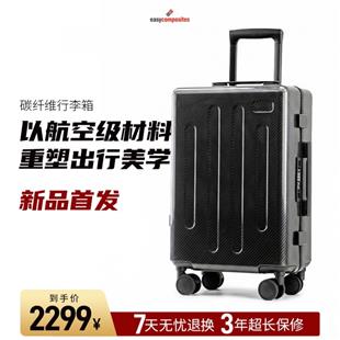 复材易购自营全碳纤维商务旅行箱行李箱,箱体采用航空级、全纹路碳纤维复合材料打造,摒弃传统拼接工艺,箱壳一体成型,线条流畅浑然天成,超顺滑静音轮+TSA海关密码锁+多层收纳隔层。从手柄触感到万向轮音噪,每一处细节都经过精心调校,20寸黄金登机规格,专为高效出行的现代精英量身定制。